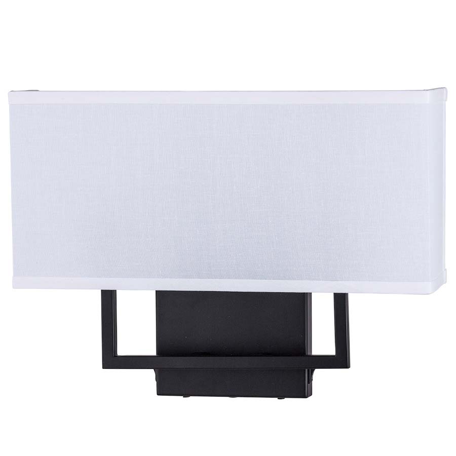 12"H Pottery Bronze Wall Lamp, two medium base sockets, two independent on/off rocker switches, 8' Silver 45° Cord exiting out back of lamp, with 4x16x4x16x7.5 Rectangle White Linen Hardback Half Shade. Recommend two 1100 lumen LED bulbs.