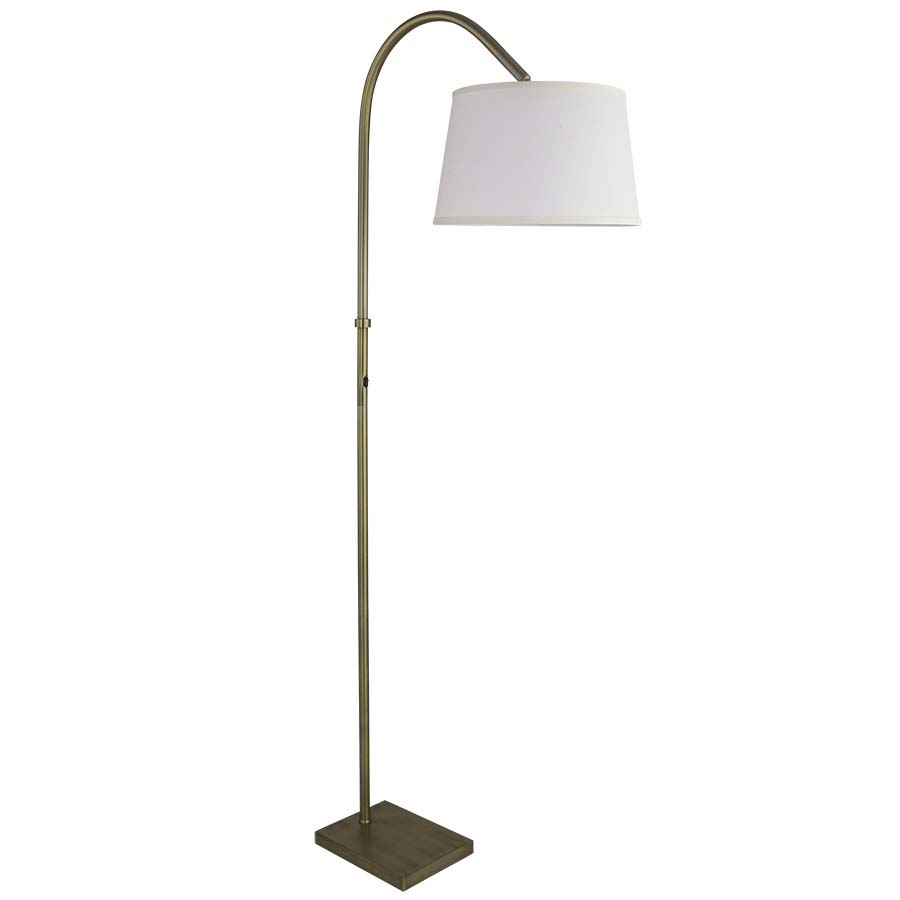 75"H Antique Brass Floor Lamp, medium base socket, on/off rocker switch on column @ 42.25"AFF, 6' Brown Cloth 45° cord, 13"x16"x10.5" Cream Linen Hardback Shade with Uno TR, recommend 1100 lumen LED bulb