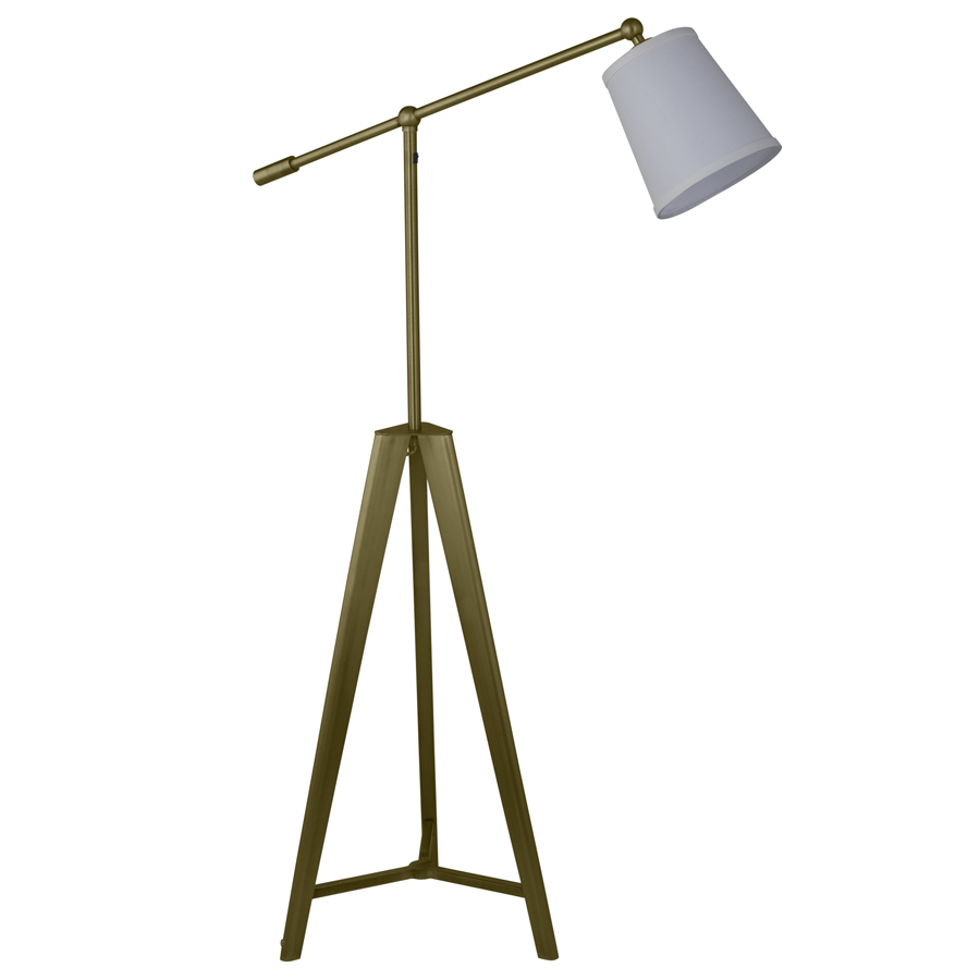 52" Antique Brass Floor Lamp, medium base socket, on/off rocker switch on column @ 45"AFF, 6' Silver 45° cord, with 5x7x7.5 Cream Linen Hardback Shade. Recommend 800 lumen LED bulb.