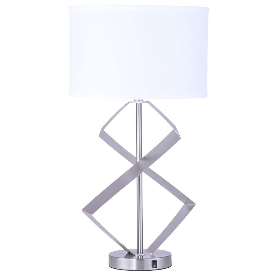 26" Brushed Nickel Table Lamp, medium base socket, on/off rocker base switch, 8' Silver 45° cord, with 14x14x9 White Linen HB Shade. Recommend 1100 lumen LED bulb.