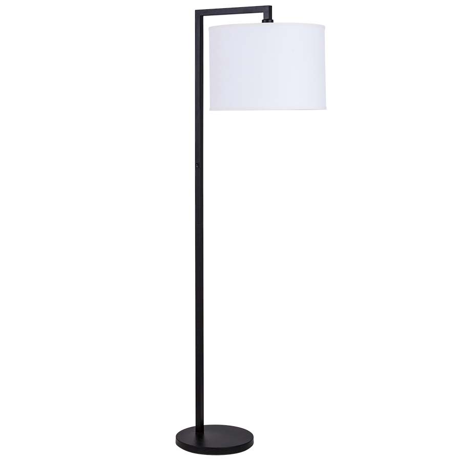 66" Matte Black Floor Lamp, medium base socket, on/off rocker switch on column at 42" AFF, 8' Silver 45° cord, with 17x17x12 Cream Linen HB Shade and top and bottom Frosted White Acrylic Diffusers. Recommend 1100 lumen LED bulb.