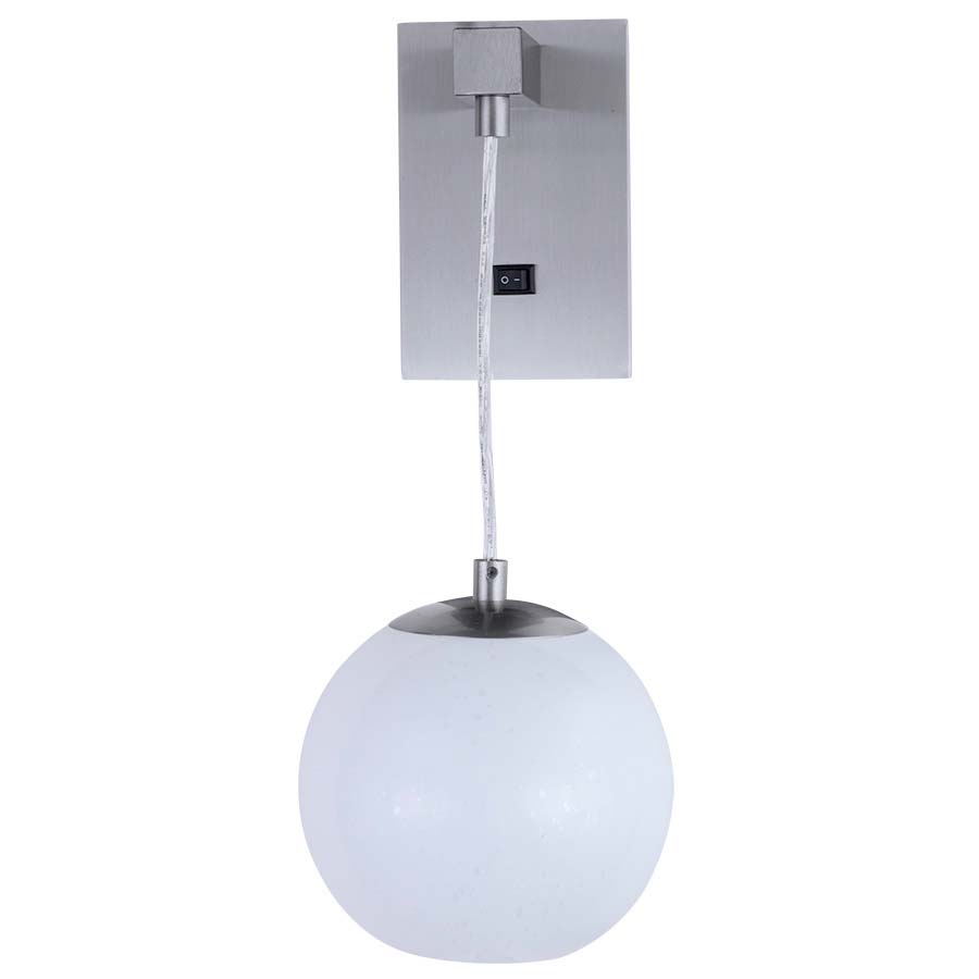 16.25"H Brushed Nickel Wall Lamp, GU24 socket, on/off rocker switch at back plate, 8' Silver 45° Cord to exit back of lamp, with White Seeded Glass Globe, Silver Cord Hung. Recommend 1100 lumen LED bulb with GU24 base.