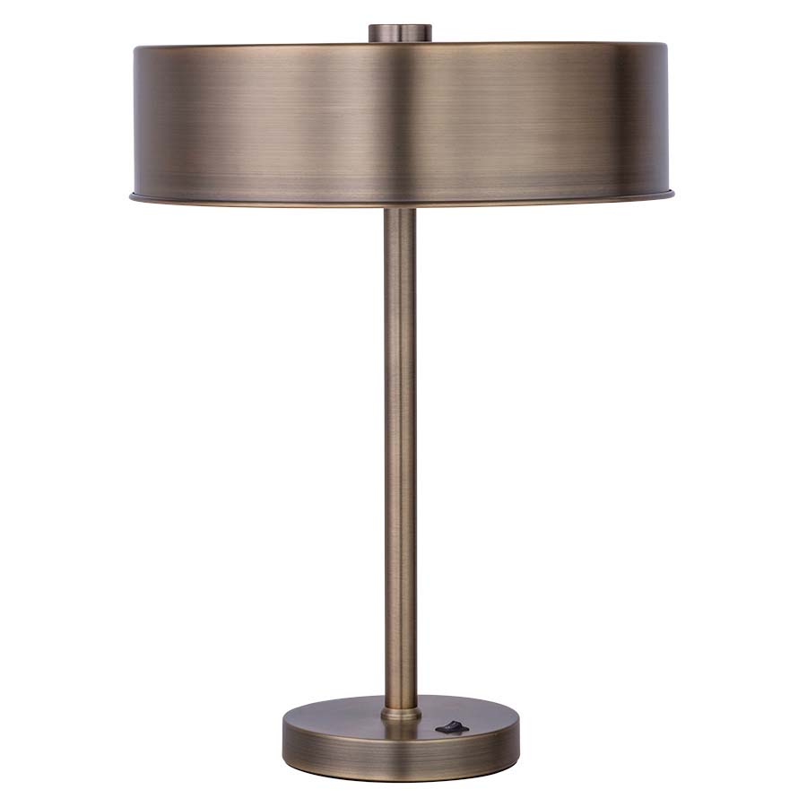 22" Brushed Brass Table Lamp, two medium base sockets, one on/off rocker base switch, 8' Silver 45° cord, with Metal Shade. Recommend two 1100 lumen LED bulbs.