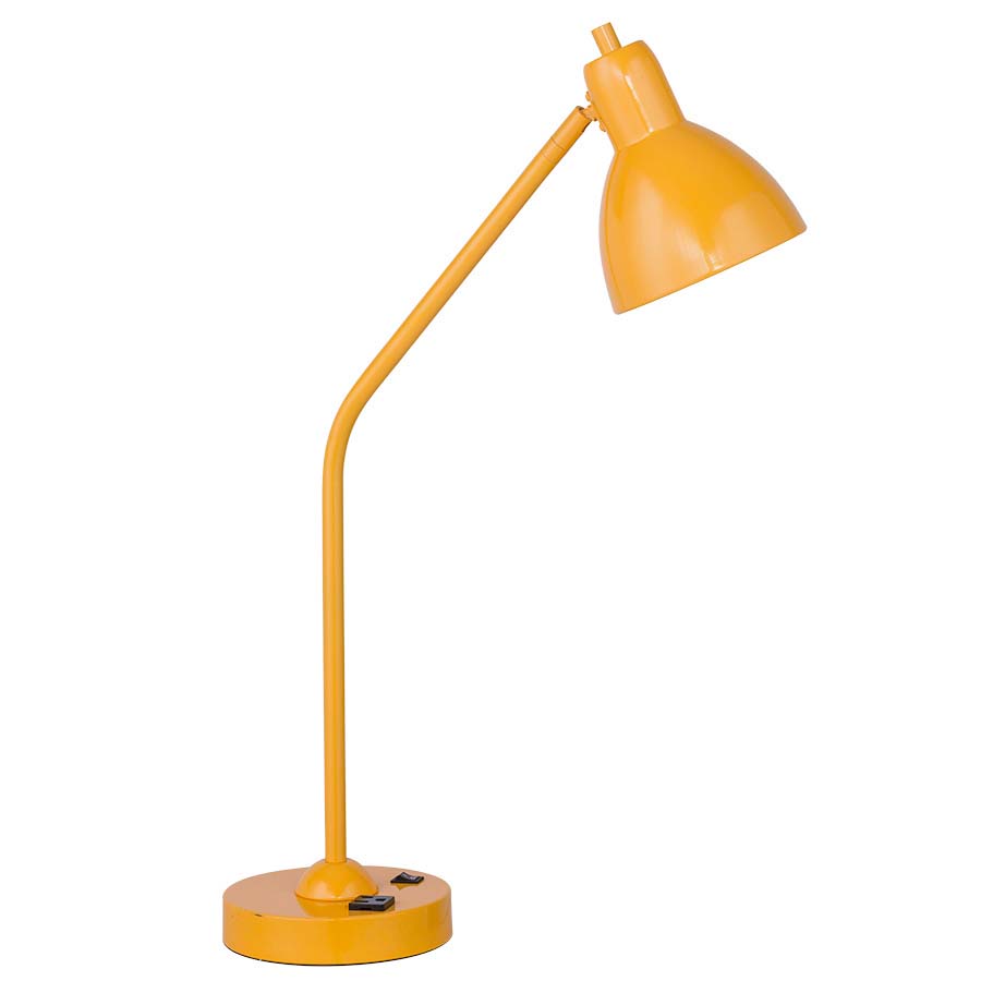 26" Signal Yellow Table Lamp, GU24 socket, on/off rocker base switch, with fixed arm, 8' Silver 45° 3-prong grounded cord, one convenience outlet, with Metal Shade. Recommend 800 lumen LED bulb with GU24 base.
