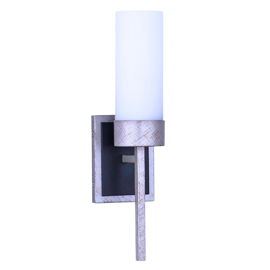 15-3/8"H Antique Silver Wall Sconce with Matte Black accent plate, medium base socket, direct wired, with White Frosted Glass Shade, recommend 1100 lumen LED bulb.