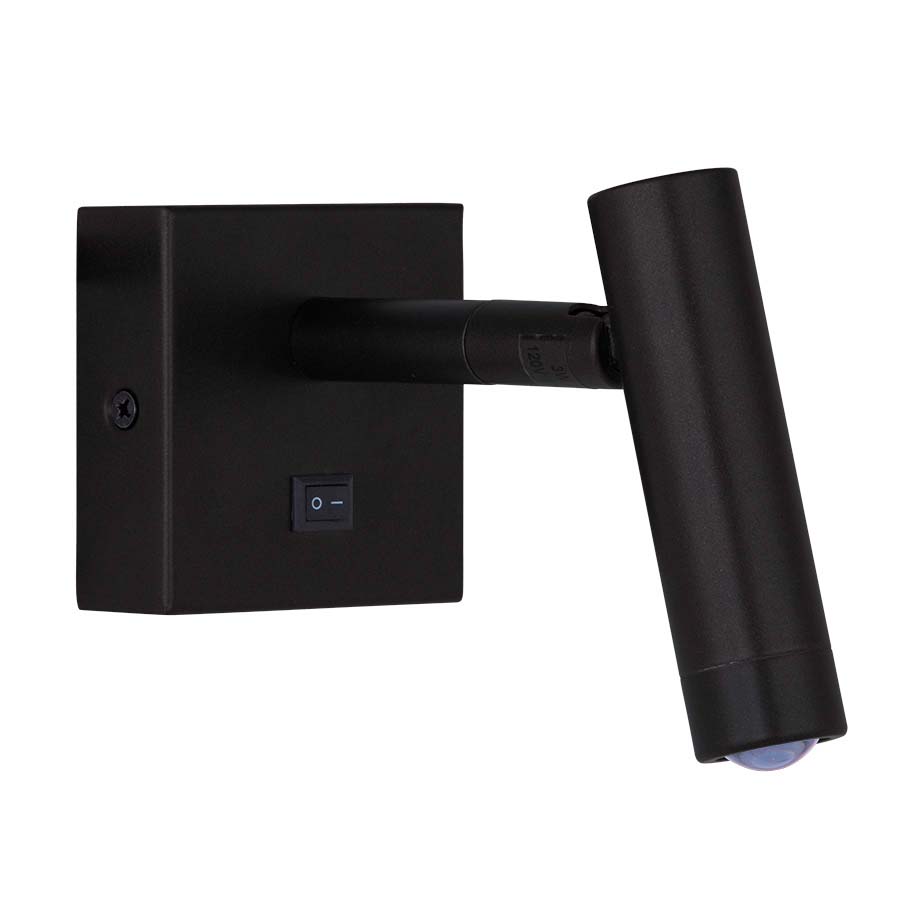 4"H Matte Black Integrated LED Wall Lamp, 3 watt LED, 240 lumen, 2700K, 90CRI, on/off rocker switch at backplate, 90° swivel up and down, 350° swivel from side to side, 8' Black cord with LED Driver, with clear acrylic diffuser.