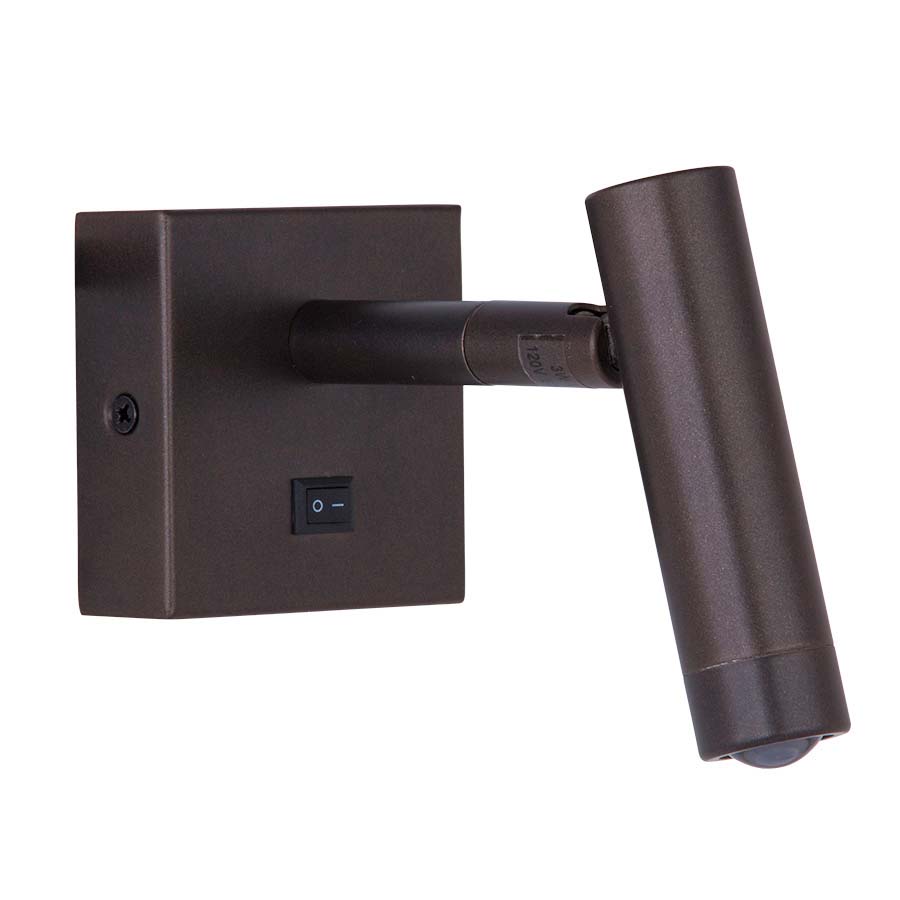 4"H Painted Olde Bronze Integrated LED Wall Lamp, 3 watt LED, 240 lumen, 2700K, 90CRI, on/off rocker switch at backplate, 90° swivel up and down, 350° swivel from side to side, 8' Black cord with LED Driver, with clear acrylic diffuser.