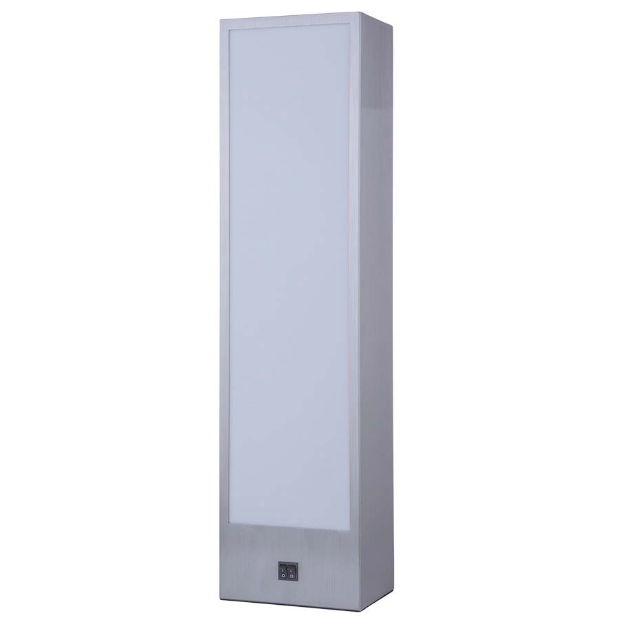 27"H Brushed Nickel Table Lamp, dual medium base socket, dual on/off rocker base switch, 8' Silver 45° cord, with White Frosted Acrylic lens at front and back. Recommend two 1100 lumen LED bulbs.