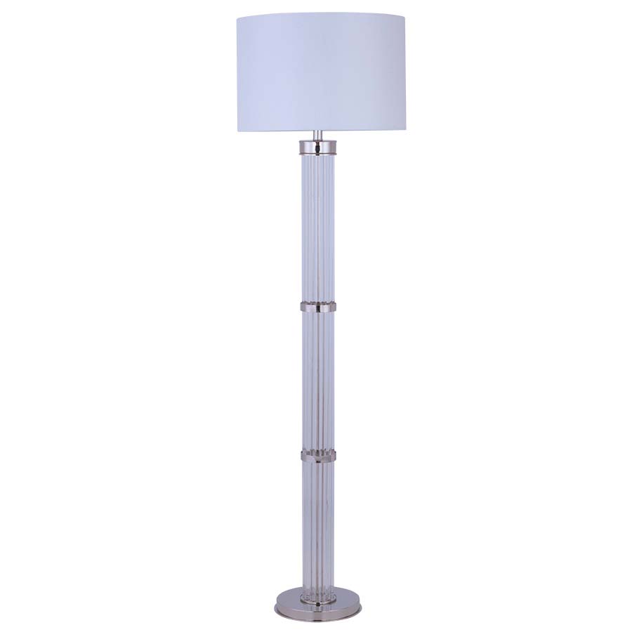 65"H Polished Nickel Floor Lamp with Clear Acrylic Rod, medium base socket, on/off rocker switch on column, 12' Silver 45° cord, 18"x18"x12" Lily Natural Linen Shade with Rolled Edges, recommend 1100 lumen LED bulb