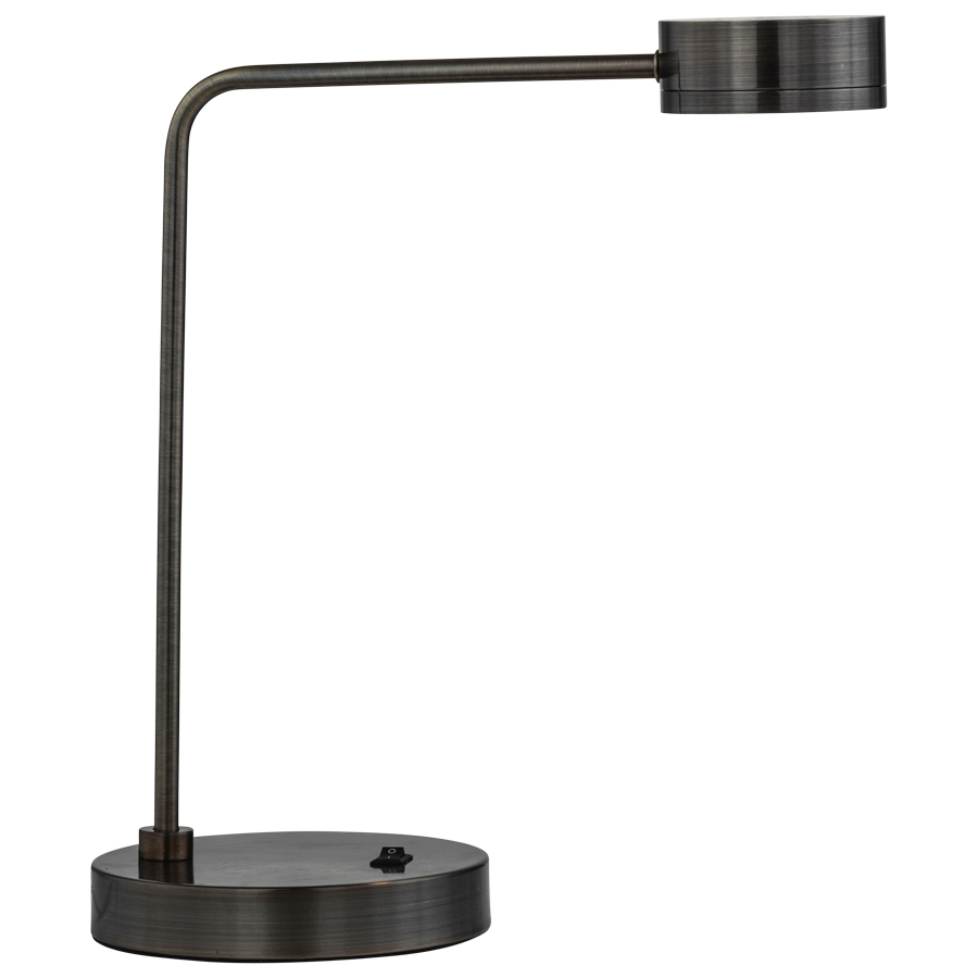 16"H Plated Bozeman Bronze Integrated LED Table Lamp, 8 watt LED, 800 lumen, 3000K, 90CRI, on/off rocker base switch, 5' Silver 45° cord, Metal Shade with White Frosted Acrylic bottom diffuser