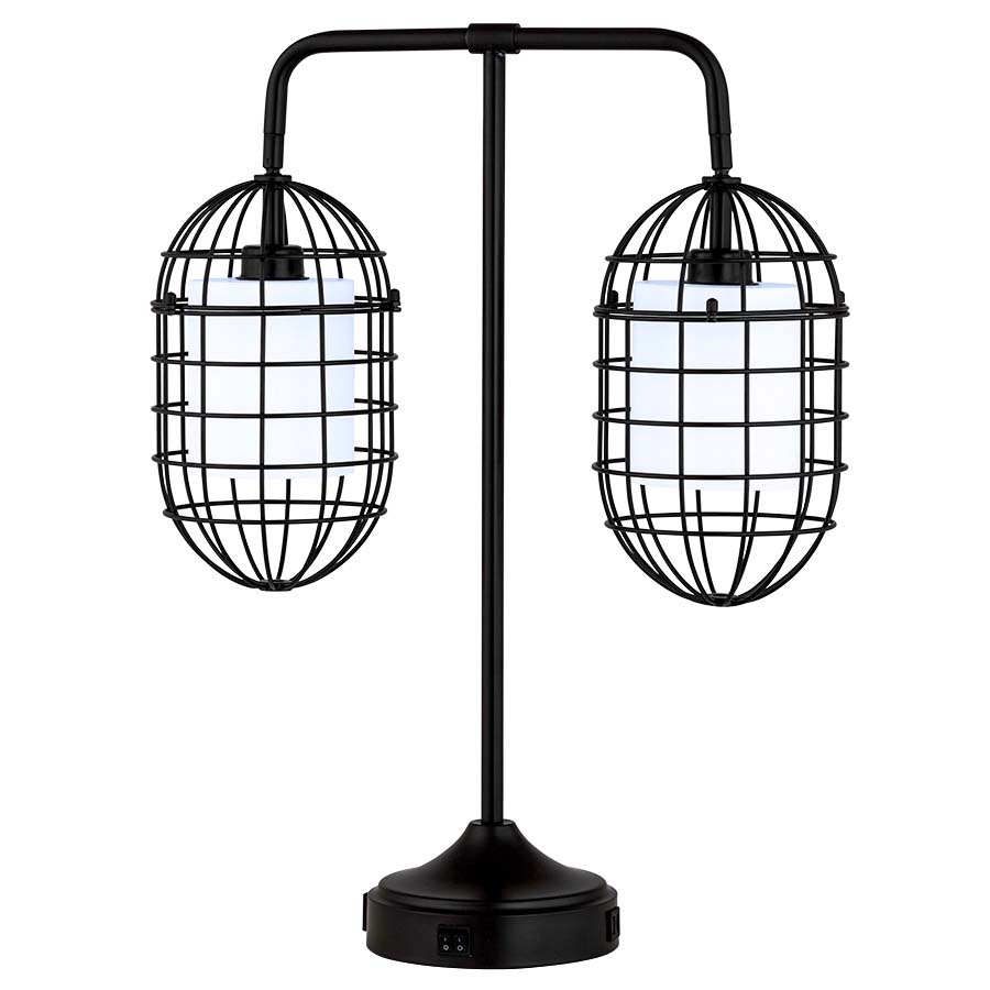 26" Table Lamp shown in Pottery Bronze with Brushed Brass accents and dual sockets within a cage-like frame.