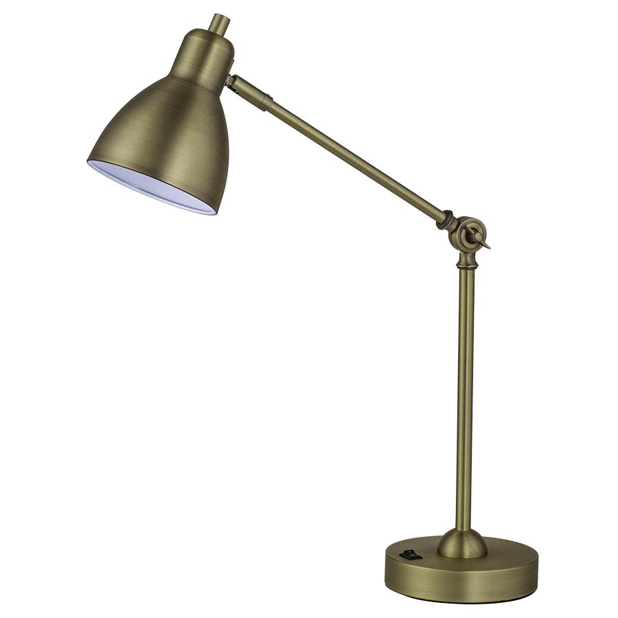 22"H Brushed Brass Table Lamp, with a Fixed Arm, medium base socket, on/off rocker base switch, 8' Silver 45° cord, Metal Shade with a Powder Coated White Interior, recommend 1100 lumen LED bulb