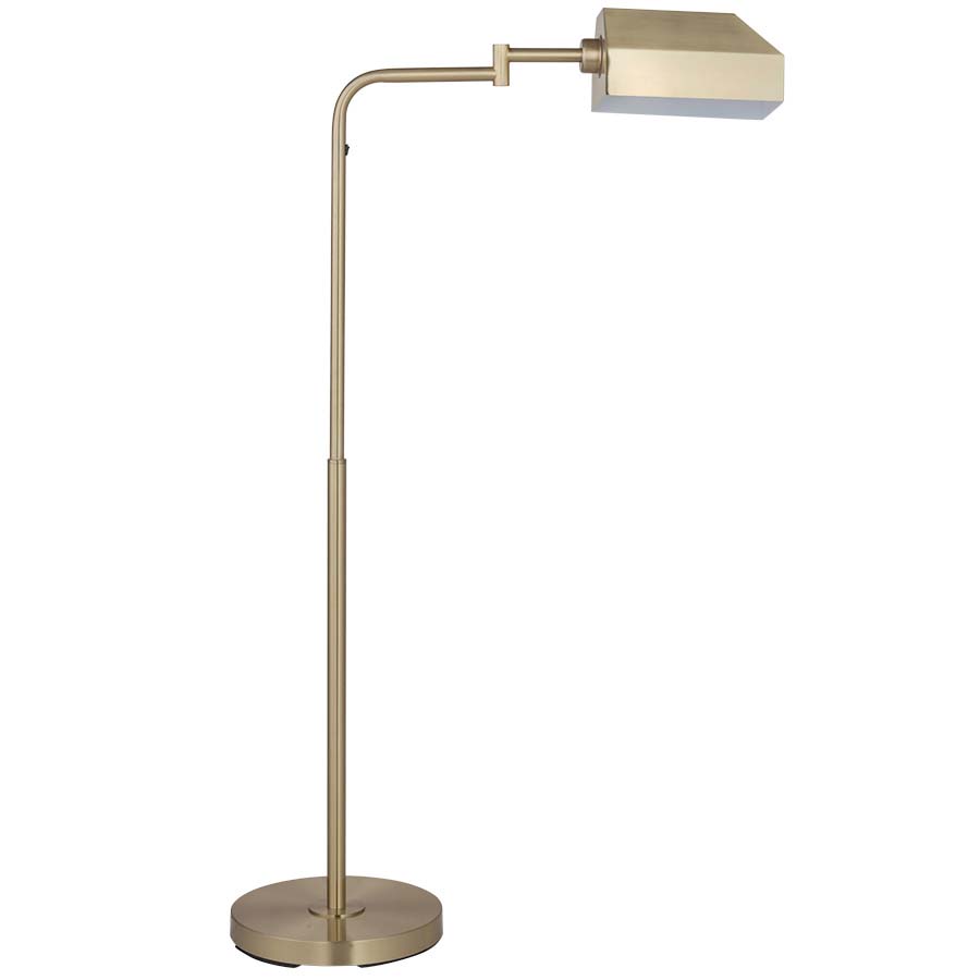 48"H Aged Brass Floor Lamp, medium base socket, on/off rocker switch on column, adjustable column, 8' Silver 45° cord, Metal Shade, recommend 1100 lumen LED bulb