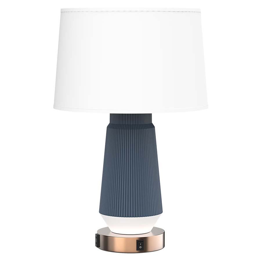 24"H Tempe Star and Snowbound and Antique Brushed Brass accents Table Lamp, medium base socket, on/off rocker base switch, one outlet, dual USB port, 8' Silver 45° 3-prong grounded cord, 14"x15.5"x10" White Linen Hardback Shade with Rolled Edges, recommend 1100 lumen LED bulb