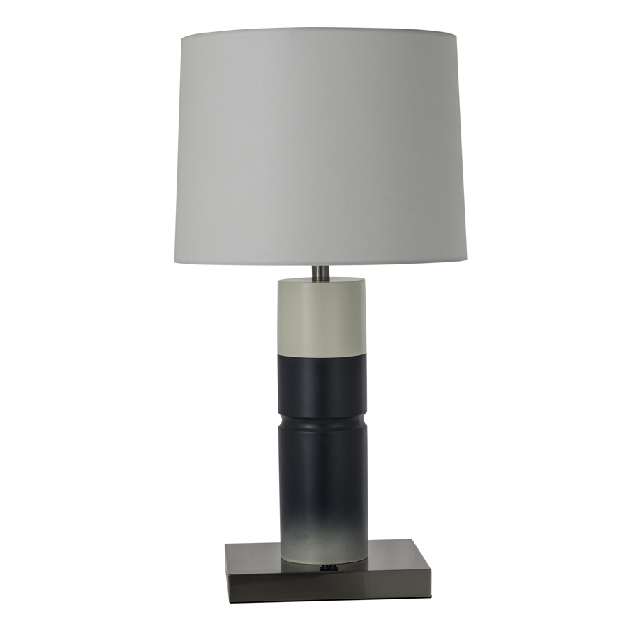 30"H Gradiation to match Benjamin Moore OC-125 Moonlight White and Benjamin Moore #1666 In the Midnight Hour Table Lamp with Brushed Nickel Base, dual medium base socket, dual on/off rocker base switch, 8' Silver 45° Cord, 15"x16"x12" Cream Linen Shade with Rolled Edges, recommend two 1100 lumen LED bulbs