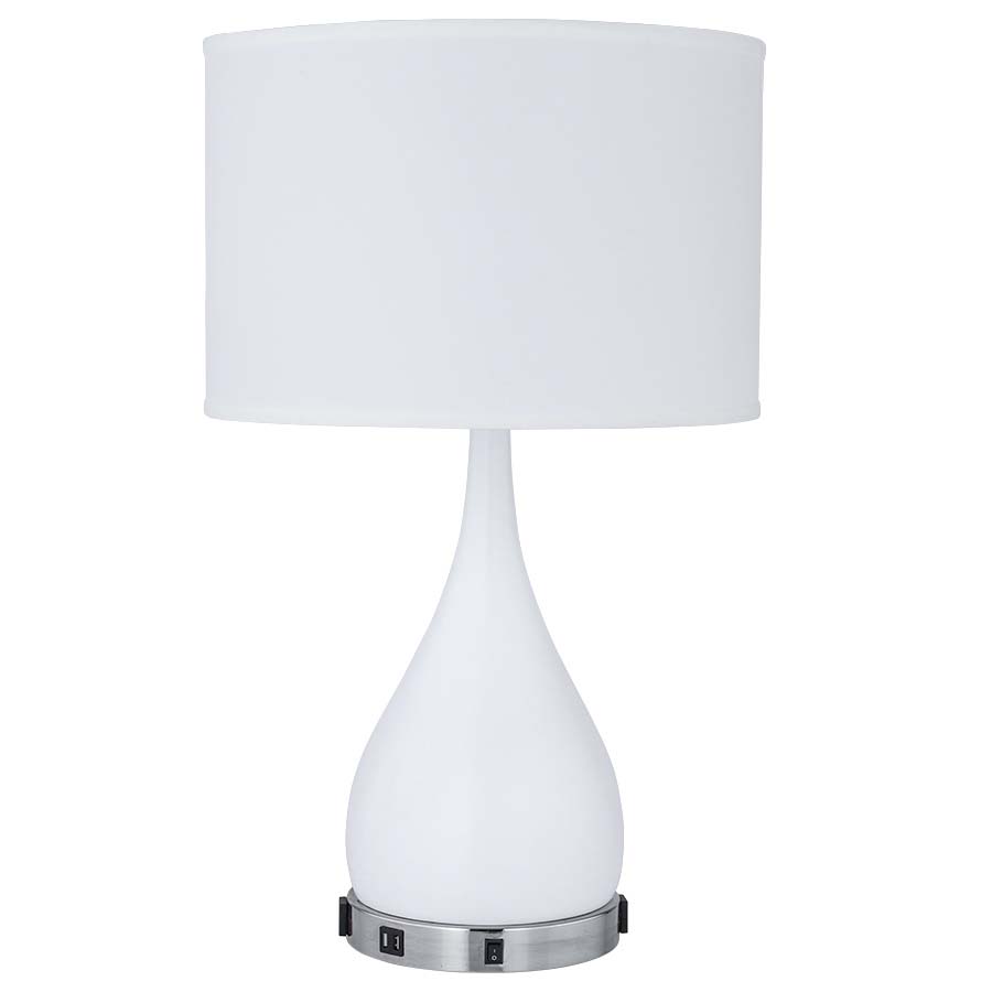 Simplicity shines brightest for hotel lighting. Arkansas Lighting's white 29" desk lamp features a resin finish, nickel base and classic white linen shade.