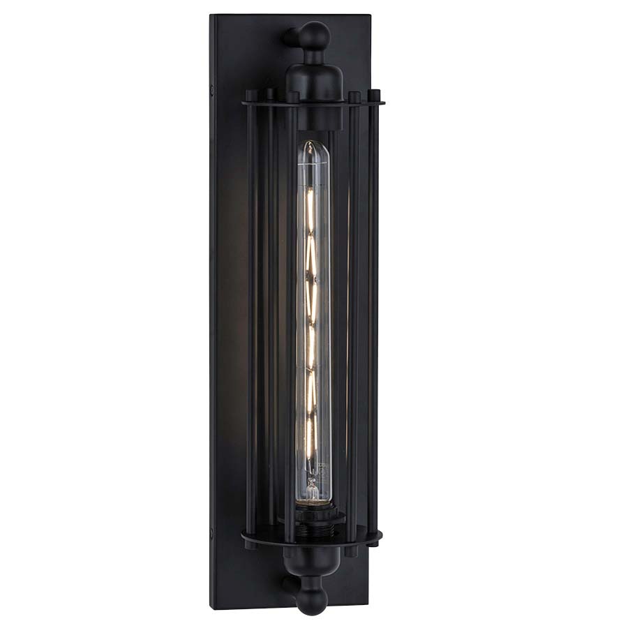 18.5"H Matte Black Wall Sconce with accent columns, medium base socket, direct wired, recommend 6.5 watt T9 LED bulb