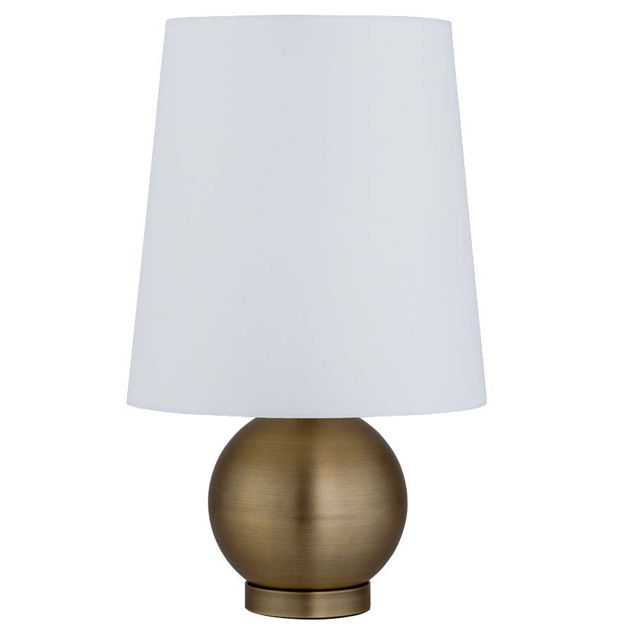23" Antique Brass Table Lamp, medium base socket, on/off rocker switch at neck, 8' Silver 45° cord, includes 11"x14"x15" Cream Linen Hardback Shade with Rolled Edges, recommend 1100 lumen LED bulb
