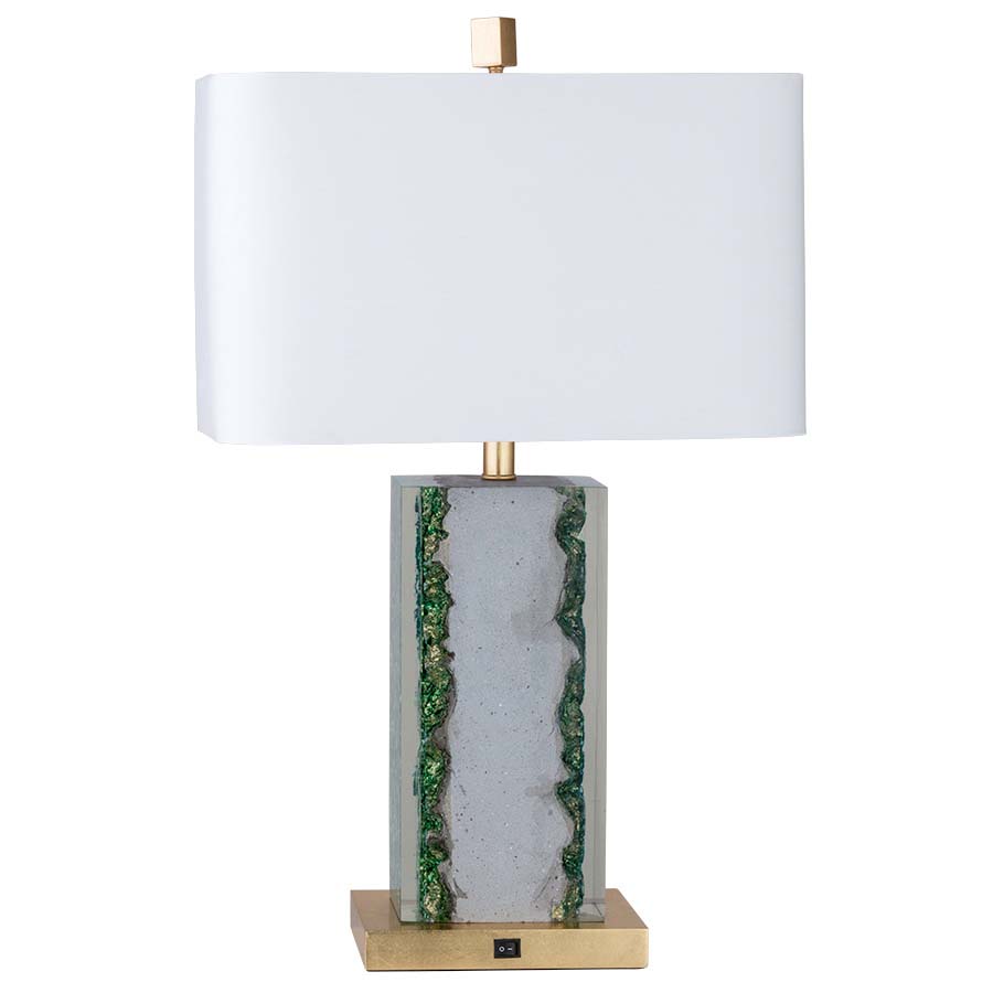 26" Table Lamp shown in Cement with Oxidized Gold and Green, along with Brushed Gold accents.