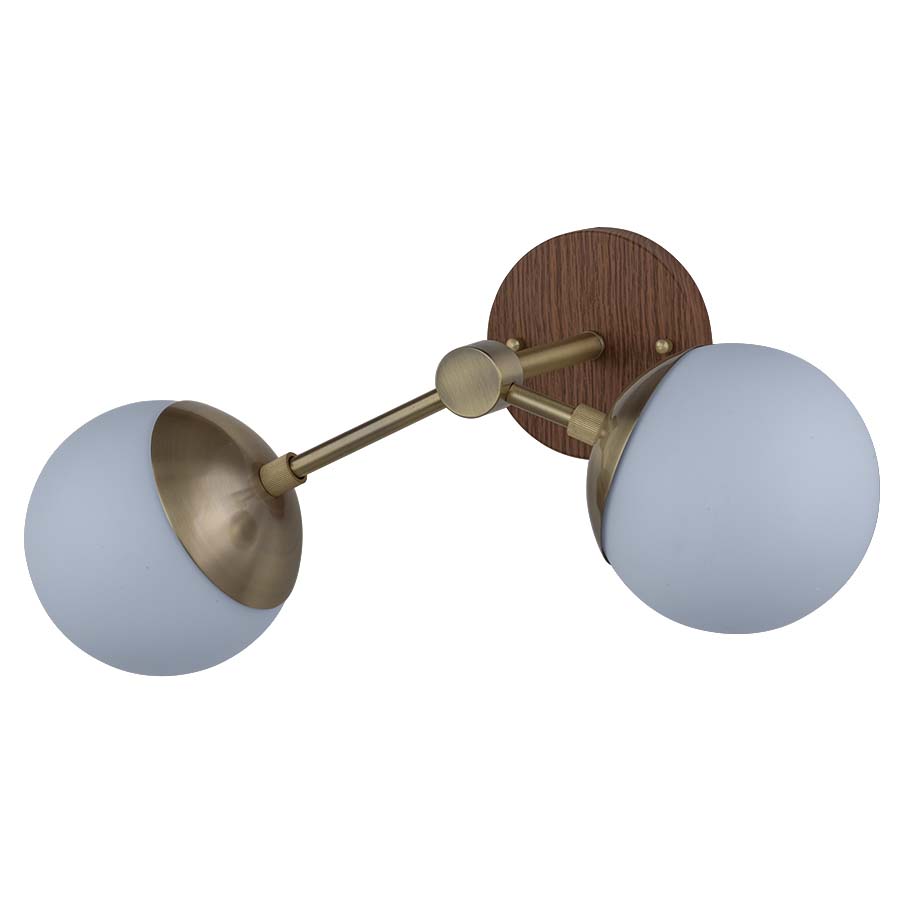 9"H Wall Lamp shown in Satin Brushed Brass and River Cherry with Milk White Glass Globes.