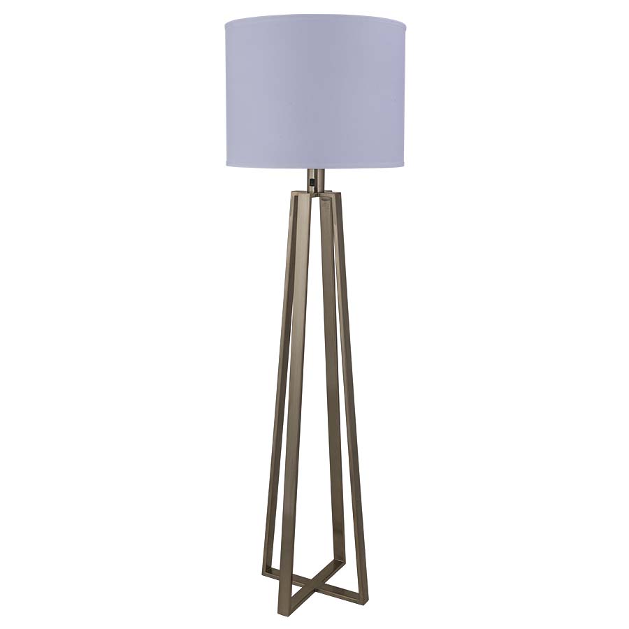 65"H Bronze Stainless Steel Aluminum Floor Lamp, medium base socket, on/off rocker switch on column @ 48"AFF, 8' Silver 45° cord, 19.5"x19.5"x15" White Linen Hardback Shade, recommend 1100 lumen LED bulb