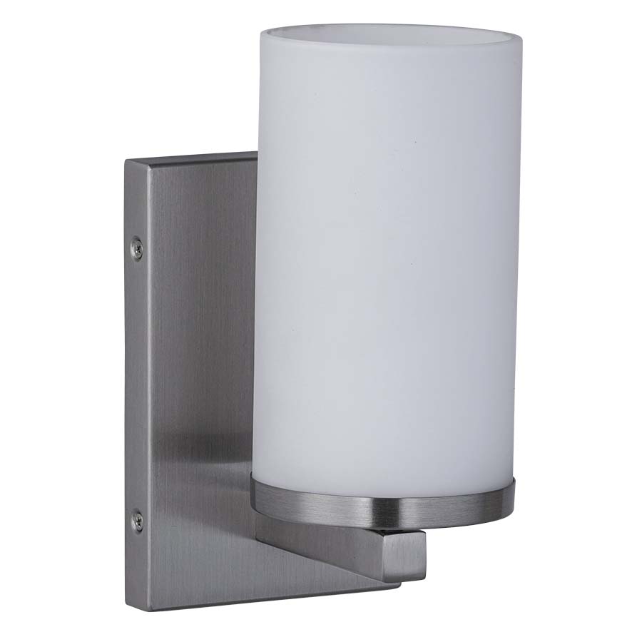 9.25"H Brushed Nickel Wall Lamp, medium base socket, direct wired, with Satin Etched Cased Opal Glass diffuser, recommend 1600 lumen LED bulb
