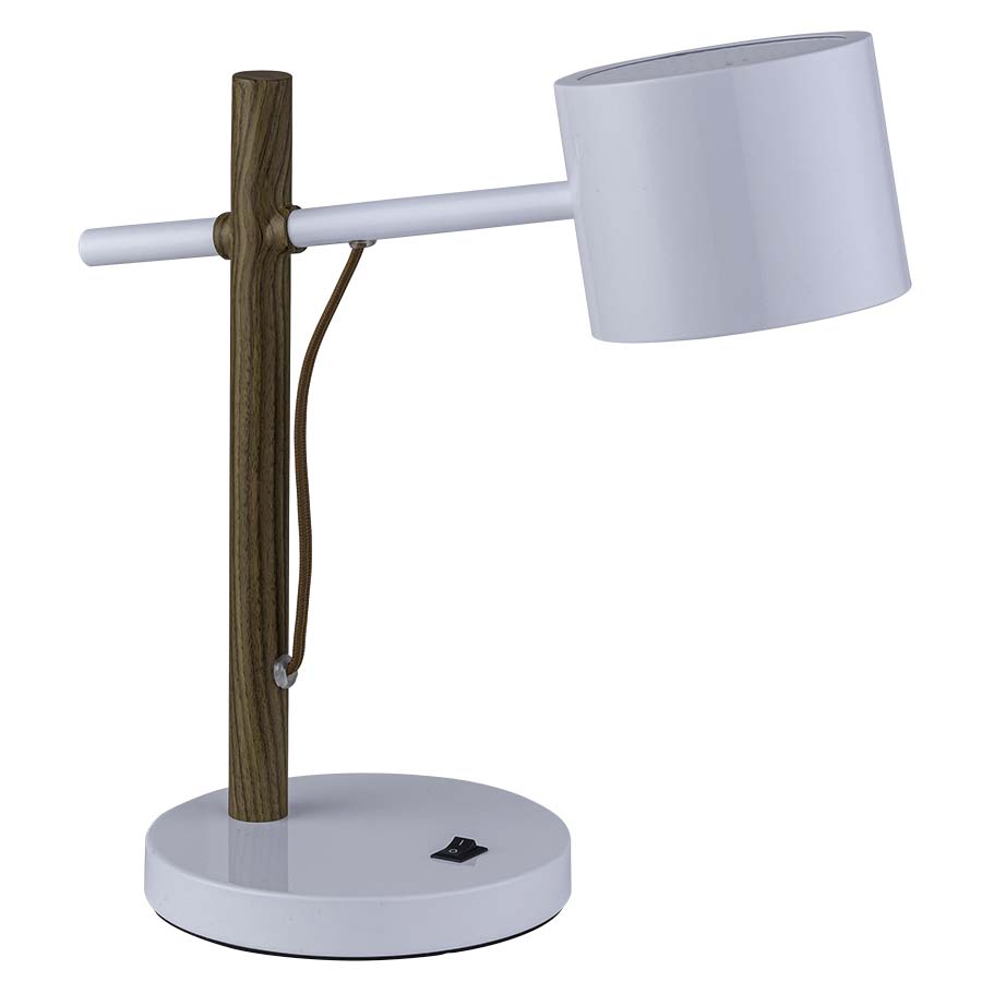 15" White and Studio Teak Wood Water Transfer Table Lamp, G9 socket, 8' Orange Fabric Cord with rocker switch on base, gloss white metal shade with perforated top acrylic diffuser, recommend 5 watt LED G9 bulb.