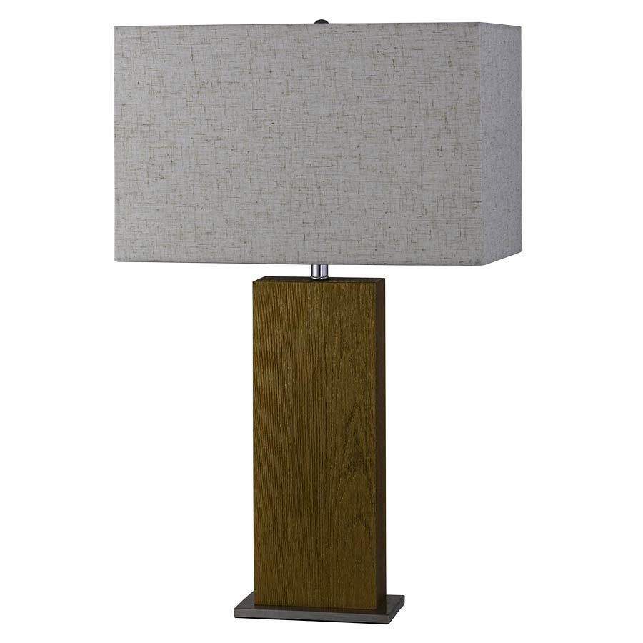 26"H Wood Oak and Painted Steel Table Lamp, medium base socket with push thru socket switch, 8' Silver 45° cord, 9.75"x15.74"x9.72"x15.74"x9.84" Linen Fabric Shade, Hp&FI, recommend 800 lumen LED bulb