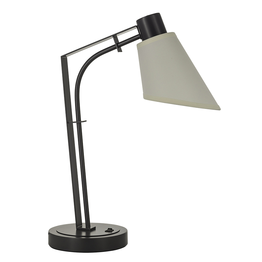 21-7/8"H Dark Smoke Table Lamp, medium base socket, on/off rocker base switch, 8' Black 45° cord, 3.5"x7"x8" Cream Linen Hardback Shade, recommend 1100 lumen LED bulb