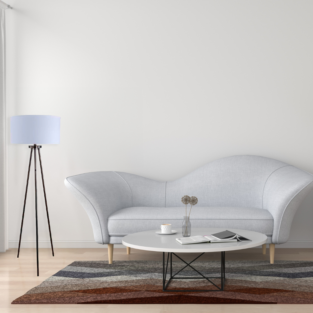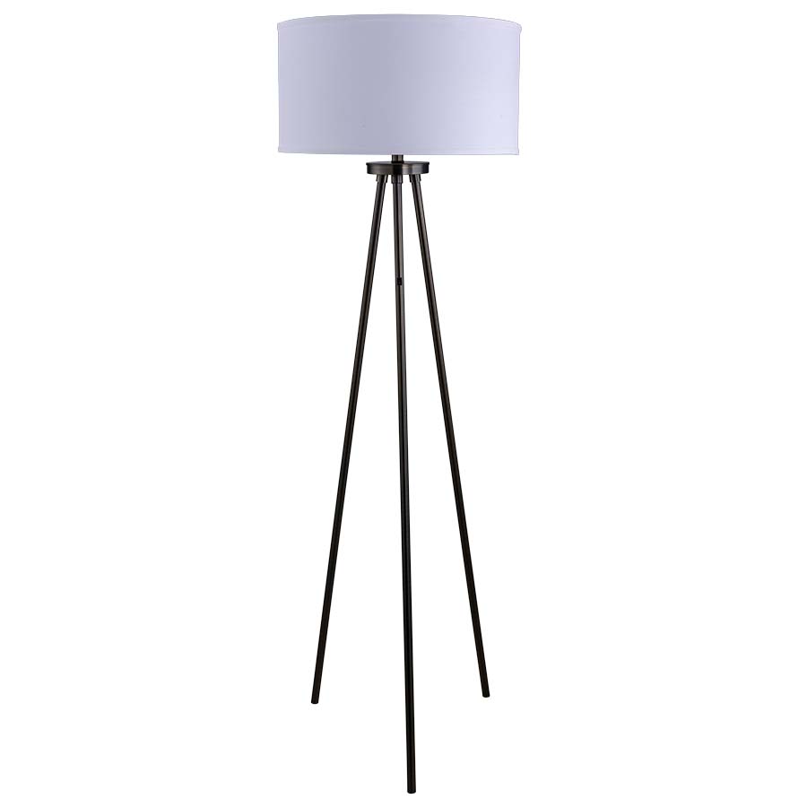 62"H Aged Antique Brass Floor Lamp, dual medium base socket, on/off rocker switch on column @ 42"AFF, 8' Black 45° cord, with extra clear lacquer coating over all metal parts, 19.5"x19.5"x10" White Linen Hardback Shade. Ships knocked down. 8" Harp Finial, recommend two 1600 lumen LED bulbs
