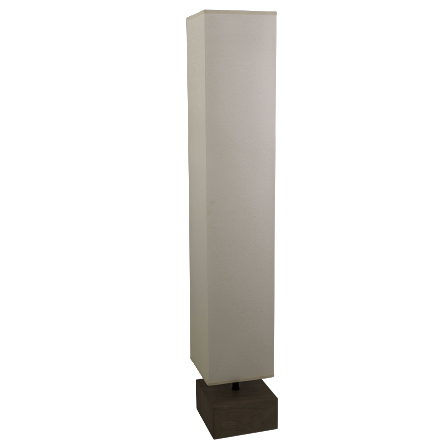 60" New Age Oak Floor Lamp with Matte Black accent, two medium base sockets, on/off foot switch, 6' Black Fabric 45° cord, 10"x10"x10"x10"x52" Square Natural Linen Hardback Shade, recommend two 800 lumen LED bulbs