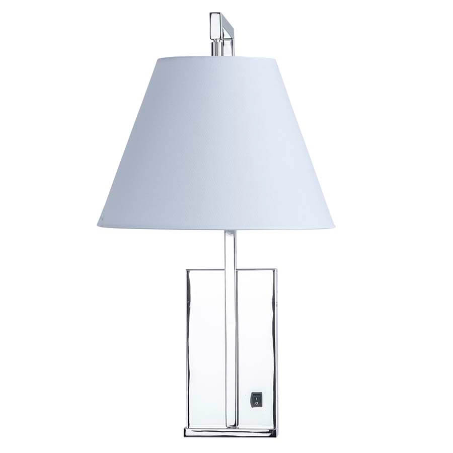 Brighten up each side of a hotel bed or other dark areas of a room with this polished chrome wall sconce with a white linen shade, from Arkansas Lighting.
