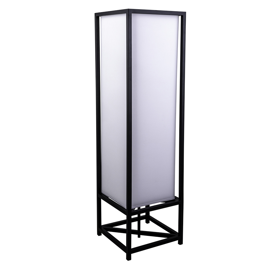 50" Matte Black Powder coated Floor Lamp, medium base socket, 6' Black Cloth 45° Cord with Foot Switch, includes a White Linen Hardback Shade, recommend 1100 lumen LED bulb