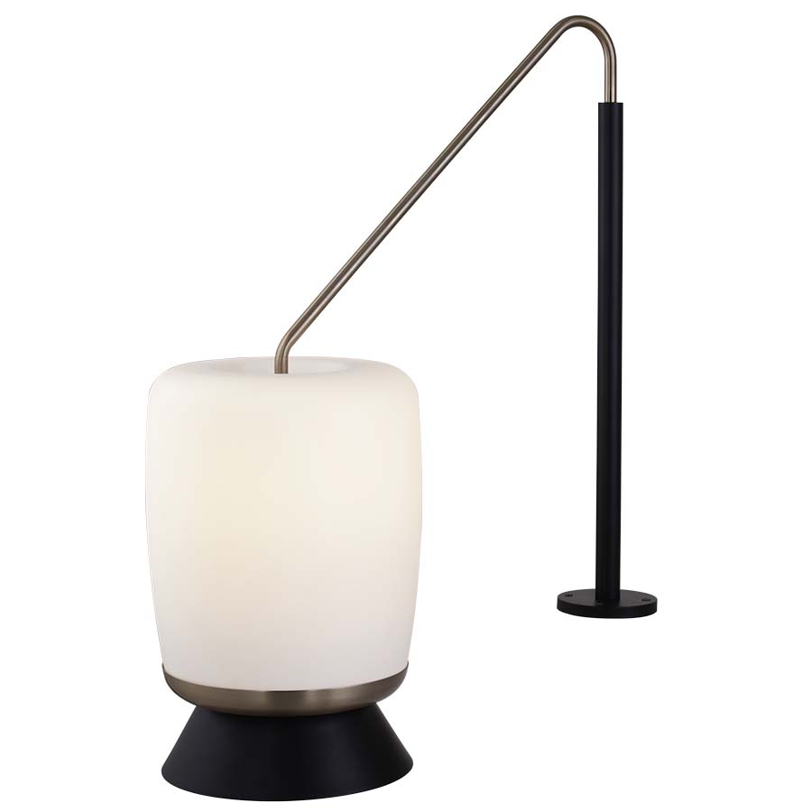 27.5"H Matte Black and Rose Gold Headboard Lamp, Integrated LED strip and E26 socket, 8' Black 45° cord exiting out bottom of tube, frosted acrylic shade and cone shade WITH diffuser at bottom. recommend 5 watt LED bulb