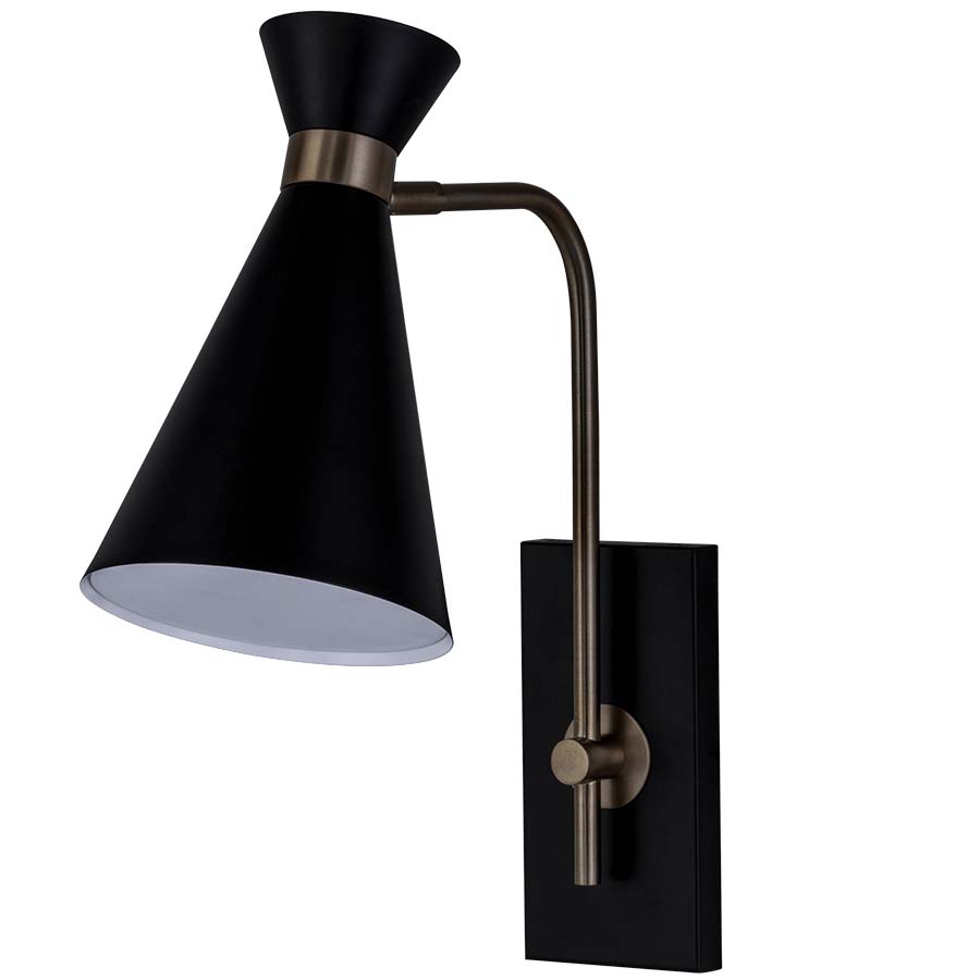 17"H Matte Black and Chemetal Rose Gold Aluminum #933 Headboard Lamp, medium base socket, 8' Black 45° cord exiting out back of lamp, Hourglass Metal Shade with accent band with acrylic bottom diffuser, recommend 800 lumen LED bulb.