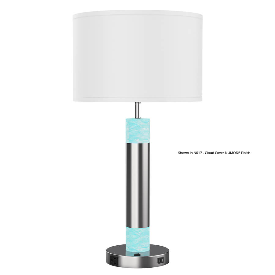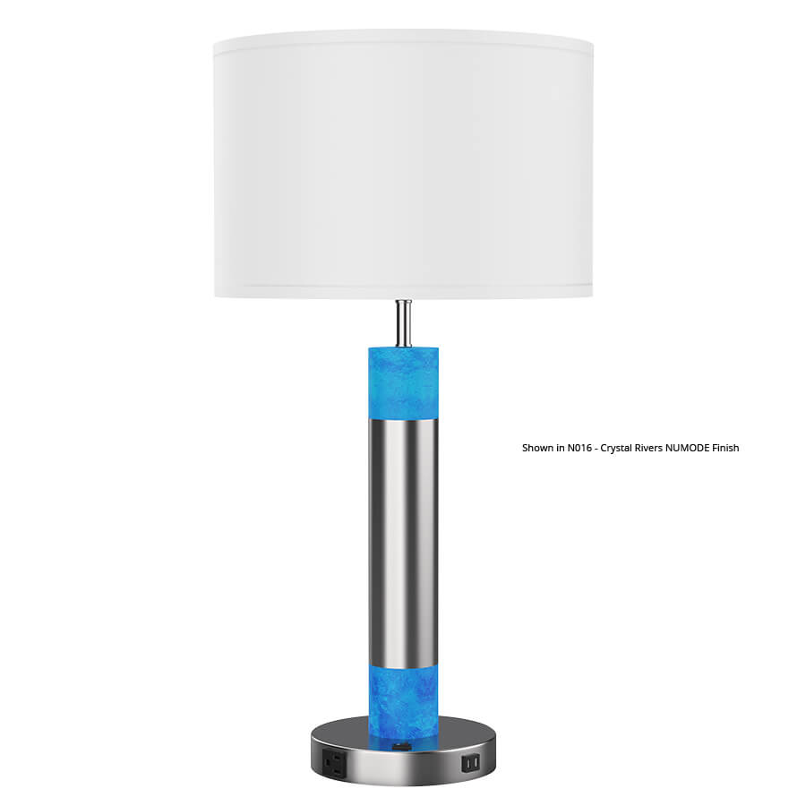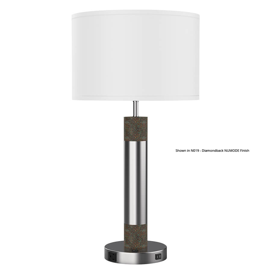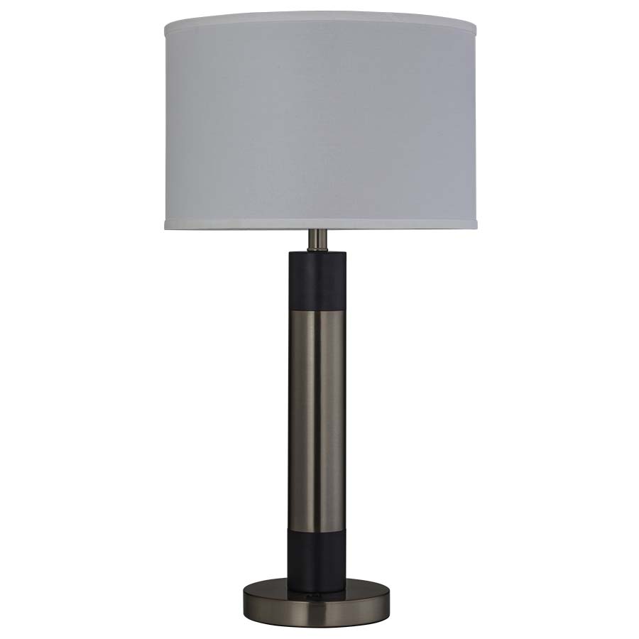 30"H Oiled Bronze Aluminum & Tuxedo Table Lamp, medium base socket, on/off rocker base switch, 8' Silver 45° cord, 16"x16"x10.5" White Linen Hardback Shade, recommend 1100 lumen LED bulb