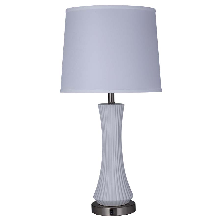 32"H Oiled Bronze Aluminum and White Dove Ceramic Table Lamp, medium base socket, on/off rocker base switch, 8' Silver 45° cord, 14"x16"x13" White Linen Hardback Shade, recommend 1100 lumen LED bulb