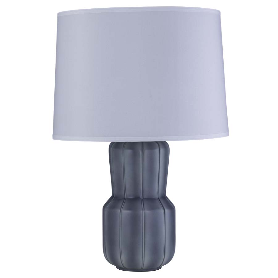 29.25"H Polar Blue Crackle Table Lamp, medium base socket with push thru socket switch, 8' Silver 45° cord, 18.25"x19.75"x14" White Linen Hardback Shade with bottom diffuser, recommend 1100 lumen LED bulb