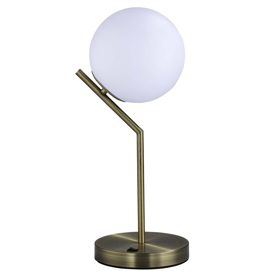 21"H Antique Brass Table Lamp, medium base socket, on/off rocker base switch, 8' Silver 45° Cord, Includes a 7-7/8"D Frosted Acrylic Globe, recommend 1100 lumen LED bulb