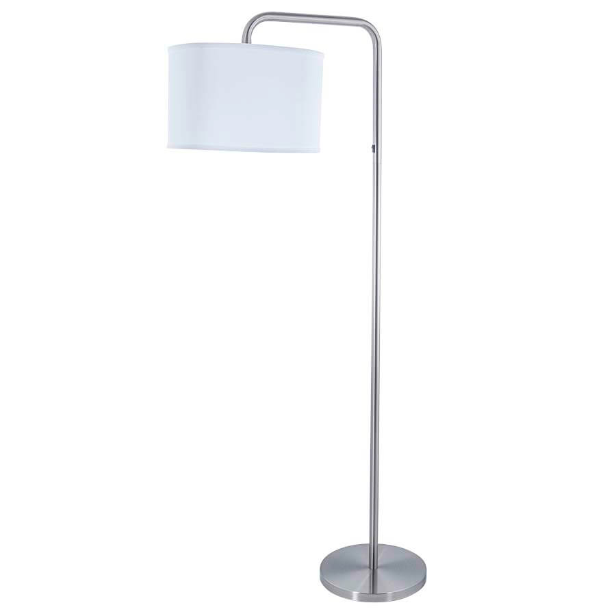 61.5"H Brushed Nickel Floor Lamp, medium base socket, on/off rocker switch on column @ 38"AFF, 8' Silver 45° cord, 14.75"x14.75"x9.5" White Linen Hardback Shade with White Frosted Acrylic bottom diffuser, recommend 1100 lumen LED bulb