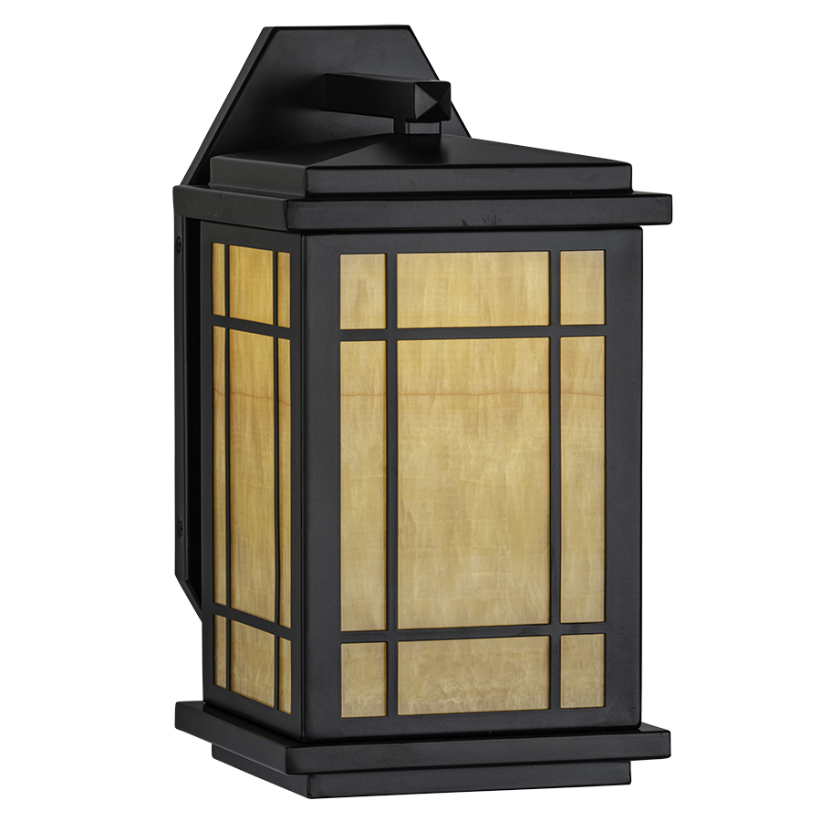 15"H Pottery Bronze Integrated LED Outdoor Wall Sconce, 22 watt LED, 2,400 lumen, 3000K, 90CRI, 120/277V, direct wired, with Amber Swirl Frosted Acrylic Diffuser, Rated UL Wet Location.