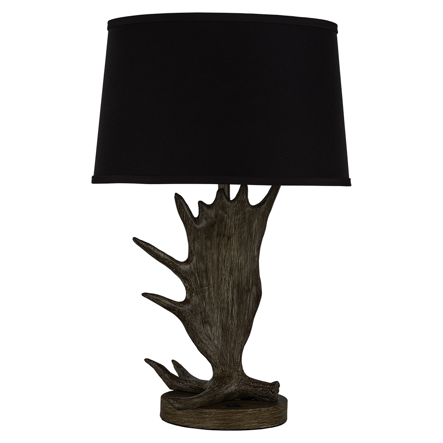 26"H Faux Antlers with replica finish set of 2 Table Lamps, each one has a medium base socket, on/off rocker base switch, 8' Silver 45° cord, 14"x16"x10" Espresso Hardback Shade, 8" Harp & Finial, recommend 1100 lumen LED bulb