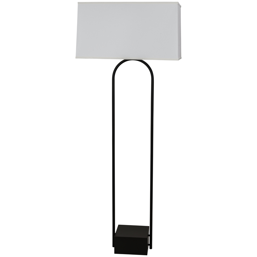 66.5"H Pottery Bronze and Bozeman Bronze #741 Floor Lamp, medium base socket, 8' Silver 45° cord with foot switch, 13"x25"x14"x26"x14" Rectangle Cream Linen Hardback Shade, with 12" harp & finial, recommend 800 lumen LED bulb