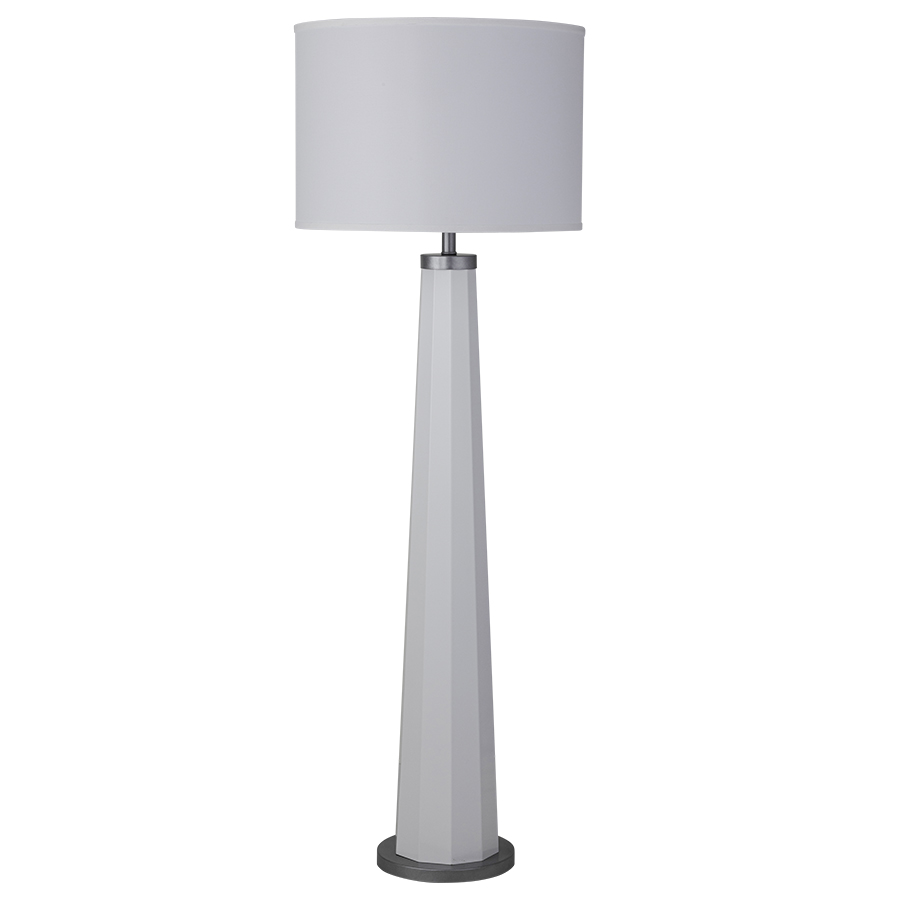60"H Powder Coat Snowbound to match SW7004 and Metallic Silver Floor Lamp, medium base socket with push thru socket switch, 12' Silver 45° cord, 20"x20"x14.5" White Linen Hardback Shade, recommend 1600 lumen LED bulb