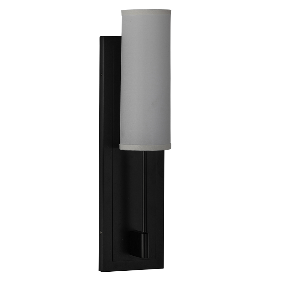 25"H Matte Black Wall Lamp, medium base socket, direct wired, 4.5"x4.5"x13" White Linen Hardback Shade, recommend 1100 lumen LED bulb