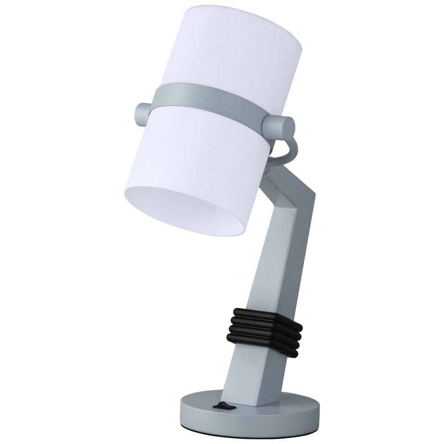 18"H Powder Coat Benjamin Moore Blue Hydrangea #2062-60 Matte Table Lamp with RAL9011 Graphite Black accent piece, medium base socket, on/off rocker base switch, 6' Silver 45° cord, Matte White Frosted Acrylic Shade with top diffuser, top diffuser has ventilation holes, recommend 1100 lumen LED bulb