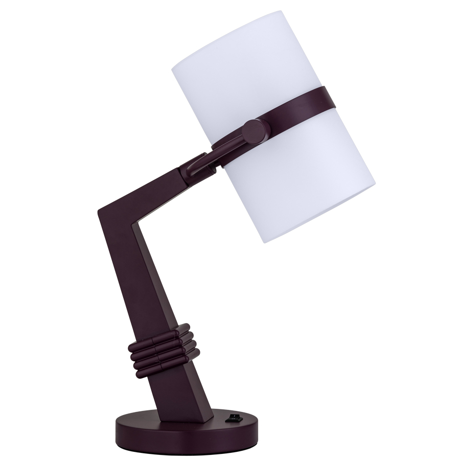 18"H Powder Coat RAL 350 30 40 Dried Flower Purple Matte Table Lamp, medium base socket, on/off rocker base switch, 6' Silver 45° cord, White Frosted Acrylic Matte Shade with top diffuser, top diffuser has ventilation holes, recommend 1100 lumen LED bulb
