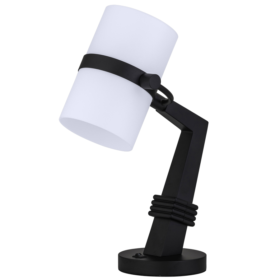 18"H Powder Coat RAL 9011 Graphite Black Table Lamp, medium base socket, on/off rocker base switch, 6' Silver 45° cord, Matte White Frosted Acrylic Shade with top diffuser, top diffuser has ventilation holes, recommend 11 Watt LED bulb