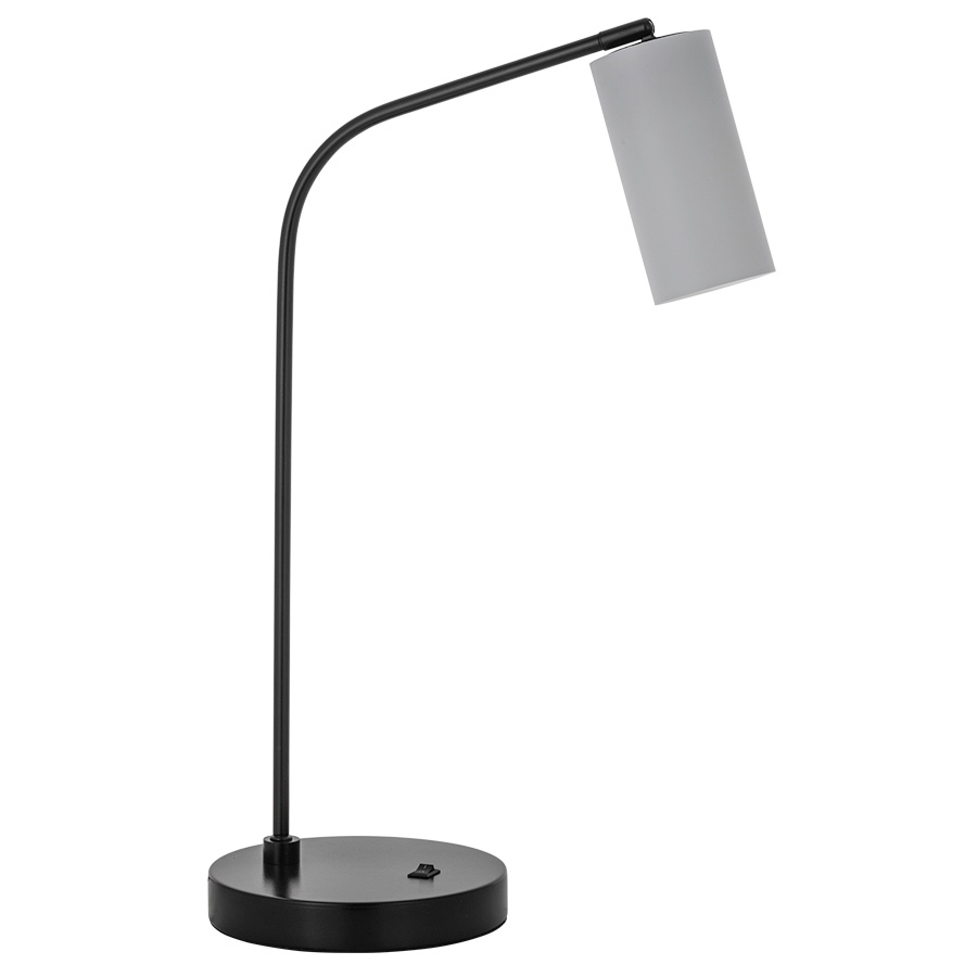 24"H Satin Blackened Bronze Table Lamp, medium base socket, on/off rocker base switch, 8' Black 45° cord, with White Frosted Acrylic Shade with ventilation holes at top of shade, Recommend one 5 watt LED bulb.