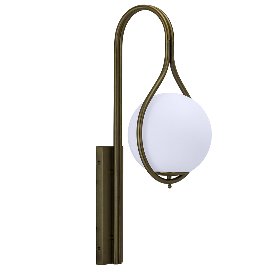 31"H Aged Brass Wall Lamp, medium base socket, direct wired, with White Frosted Acrylic Globe, recommend 5 watt LED bulb